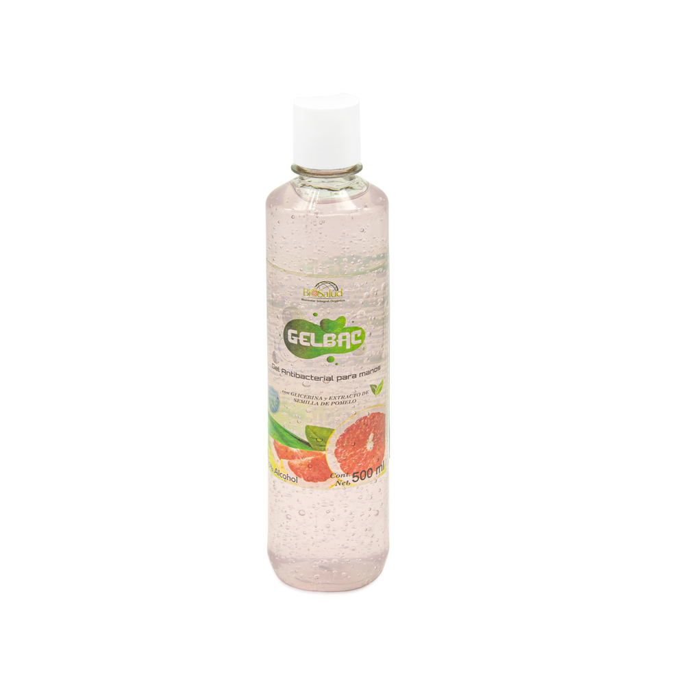 Gel antibacterial para manos con glicerina y extracto de semilla de pomelo.